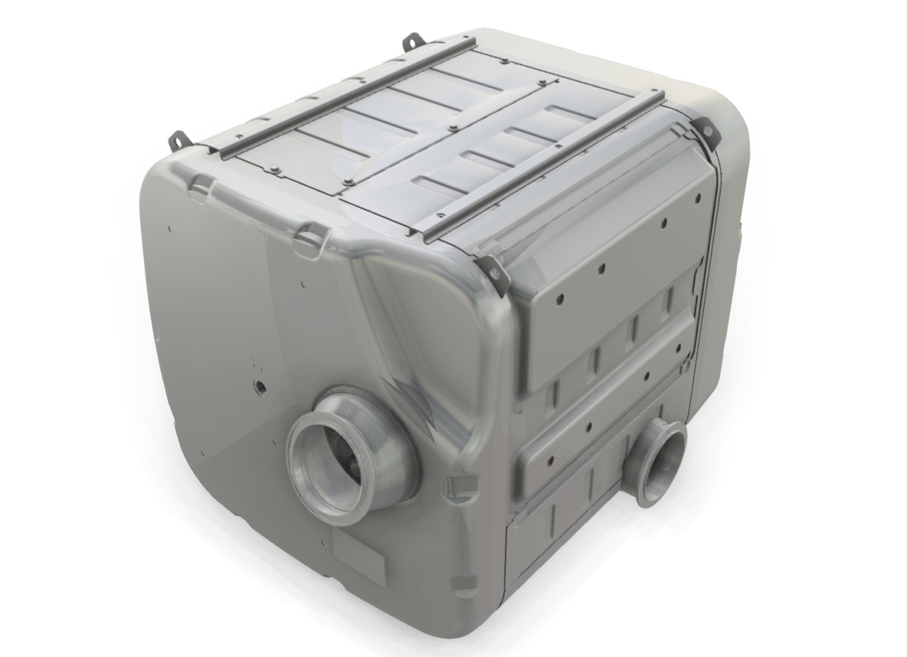 尿素箱總成用于尿素存儲罐,同時能夠準確檢測箱體內(nèi)溫度,防止尿素結(jié)冰,主要用于安裝在卡車上,裝上尿素,經(jīng)過發(fā)動機循環(huán),排放達到國VI標準。國VI排放標準柴油機減排系統(tǒng)中需用到尿素水溶液,該尿素箱用于存儲尿素水溶液,采用SCR選擇性還原技術(shù),利用尿素水溶液與氮氧化物Nox進行反應(yīng),生成無污染的氮氣和水。